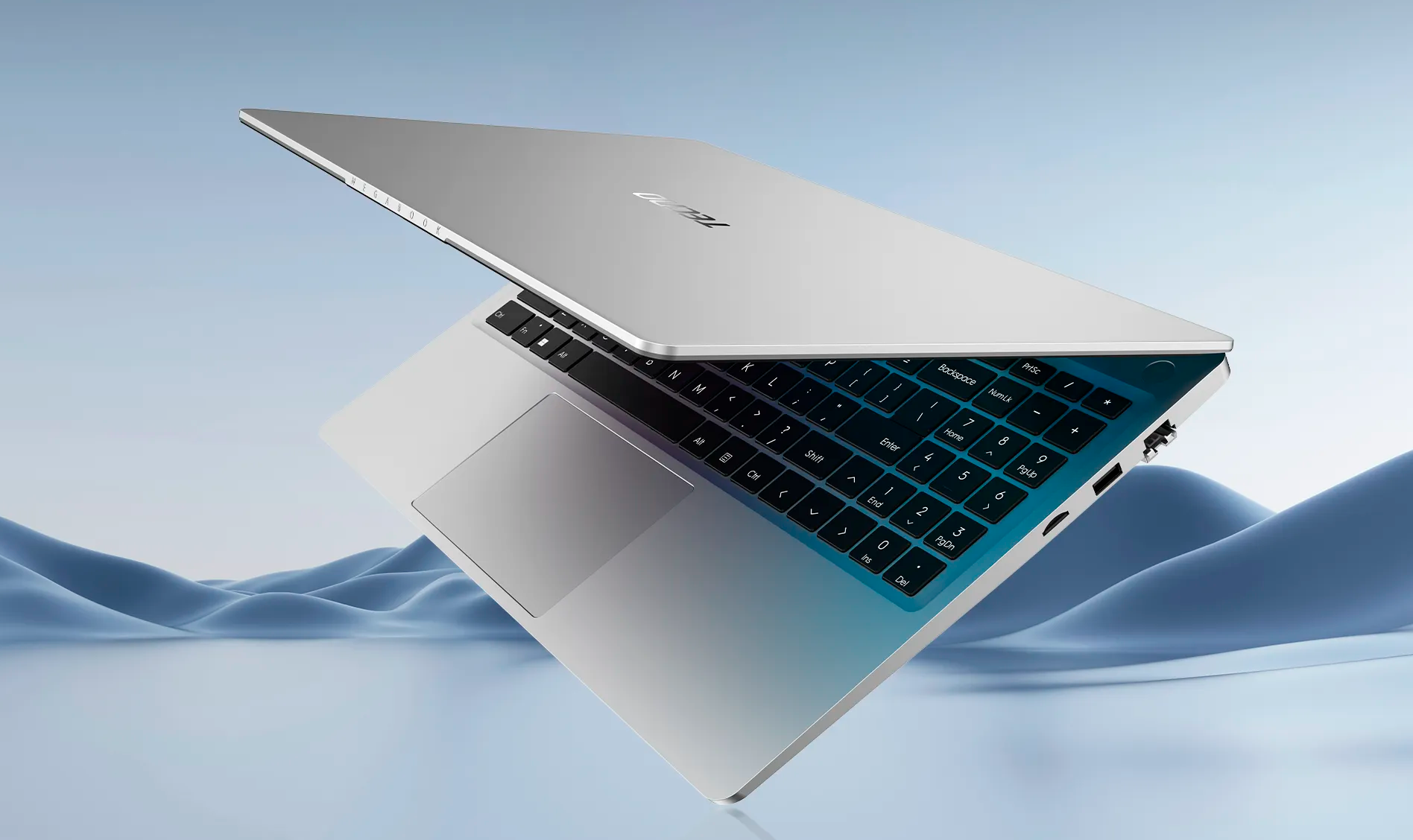 Tecno Megabook K15SFA выполнен в серебристом алюминиевом корпусе и сочетает сдержанный деловой стиль с практичностью на каждый день. Ноутбук выглядит аккуратно и современно, а благодаря толщине 17.3 мм и весу 1.58 кг его удобно брать с собой на работу, учебу или в поездки. Полноразмерная клавиатура с цифровым блоком делает модель особенно удобной для тех, кто часто работает с таблицами, документами и числами.
