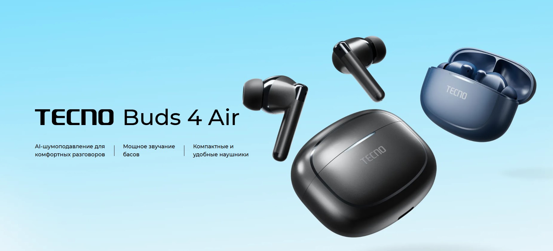 Обзор Беспроводные наушники Tecno Buds 4 Air черный BD04 AIR