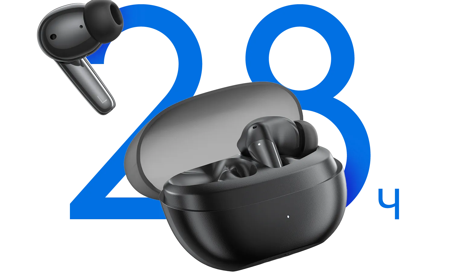Наушники поддерживают до 5 часов автономной работы. А энергоемкий аккумулятор кейса поддерживает работу устройства до 28 часов. Позвольте музыке увлечь вас за собой и наполнить любой момент дня идеальным саундтреком.