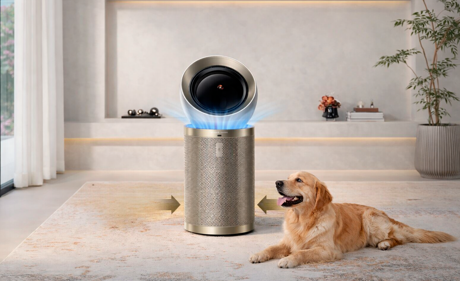 Dreame PM20 в золотистом исполнении — многофункциональный очиститель воздуха для помещений до 100 м². Подходит для дома, офиса и просторных гостиных, обеспечивая эффективную фильтрацию и дополнительный комфорт.